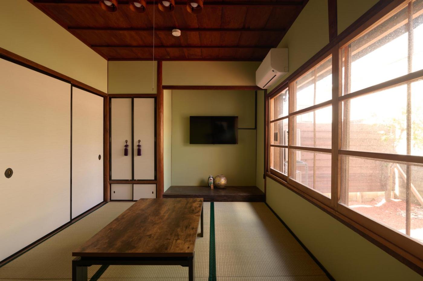 Two-Bedroom Villa. Guests will have a special experience as the villa features a hot tub. Featuring a private entrance, this air-conditioned villa consists of 3 living rooms, 2 separate bedrooms and 1 bathroom with a bath and a shower. In the kitchen, guests will find a stovetop, a refrigerator, kitchenware and a microwave. The villa provides a washing machine, tatami, a tea and coffee maker, a flat-screen TV with streaming services, as well as city views. The unit offers 4 beds.