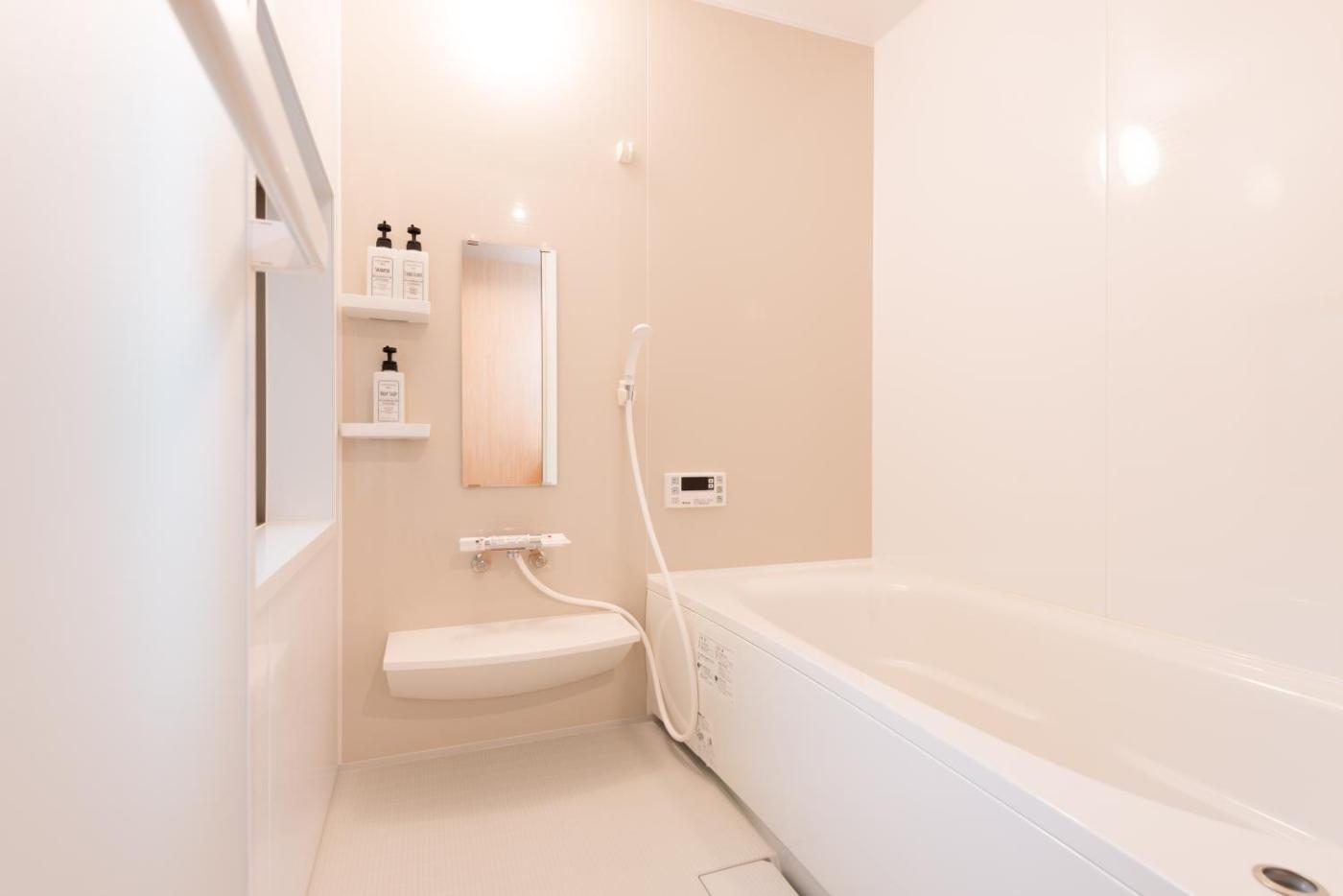 Two-Bedroom Apartment. This spacious apartment includes 1 living room, 2 separate bedrooms and 1 bathroom with a bath and free toiletries. In the well-equipped kitchen, guests will find a refrigerator, kitchenware, a microwave and a toaster. The air-conditioned apartment offers a flat-screen TV, a washing machine, tatami, a dining area as well as a quiet street view. The unit has 7 futons.