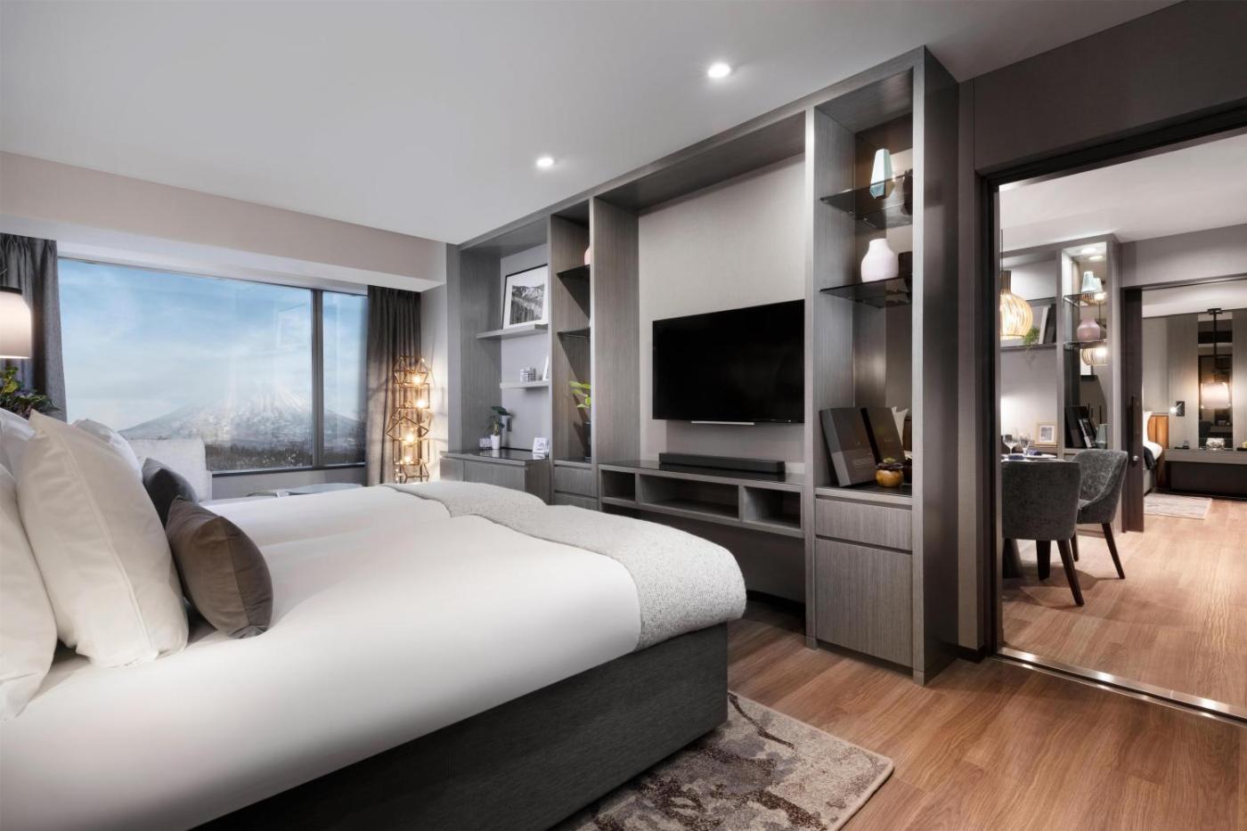 Two-Bedroom King Suite with Yotei View. The well-fitted kitchen has a refrigerator, kitchenware and a microwave. The spacious air-conditioned suite features a flat-screen TV, a washing machine, a tea and coffee maker, a dining area as well as mountain views. The unit has 2 beds.