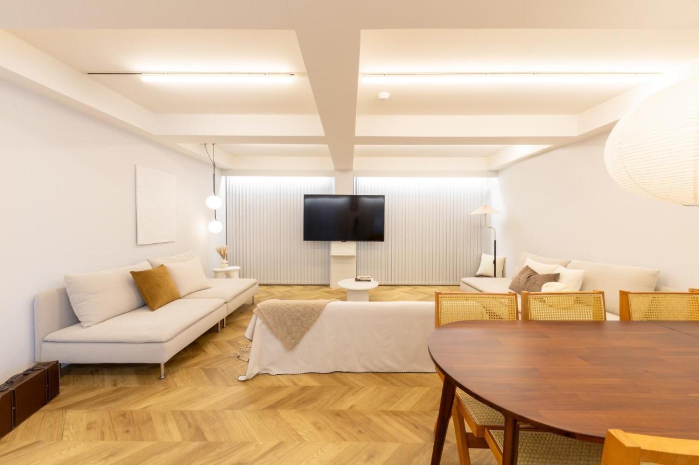 Apartment. The apartment features air conditioning, a washing machine, as well as a private bathroom boasting a bath and a shower. In the kitchen, guests will find a stovetop, a refrigerator, kitchenware and a microwave. This apartment has tumble dryer, heating and a TV. The unit has 8 beds.