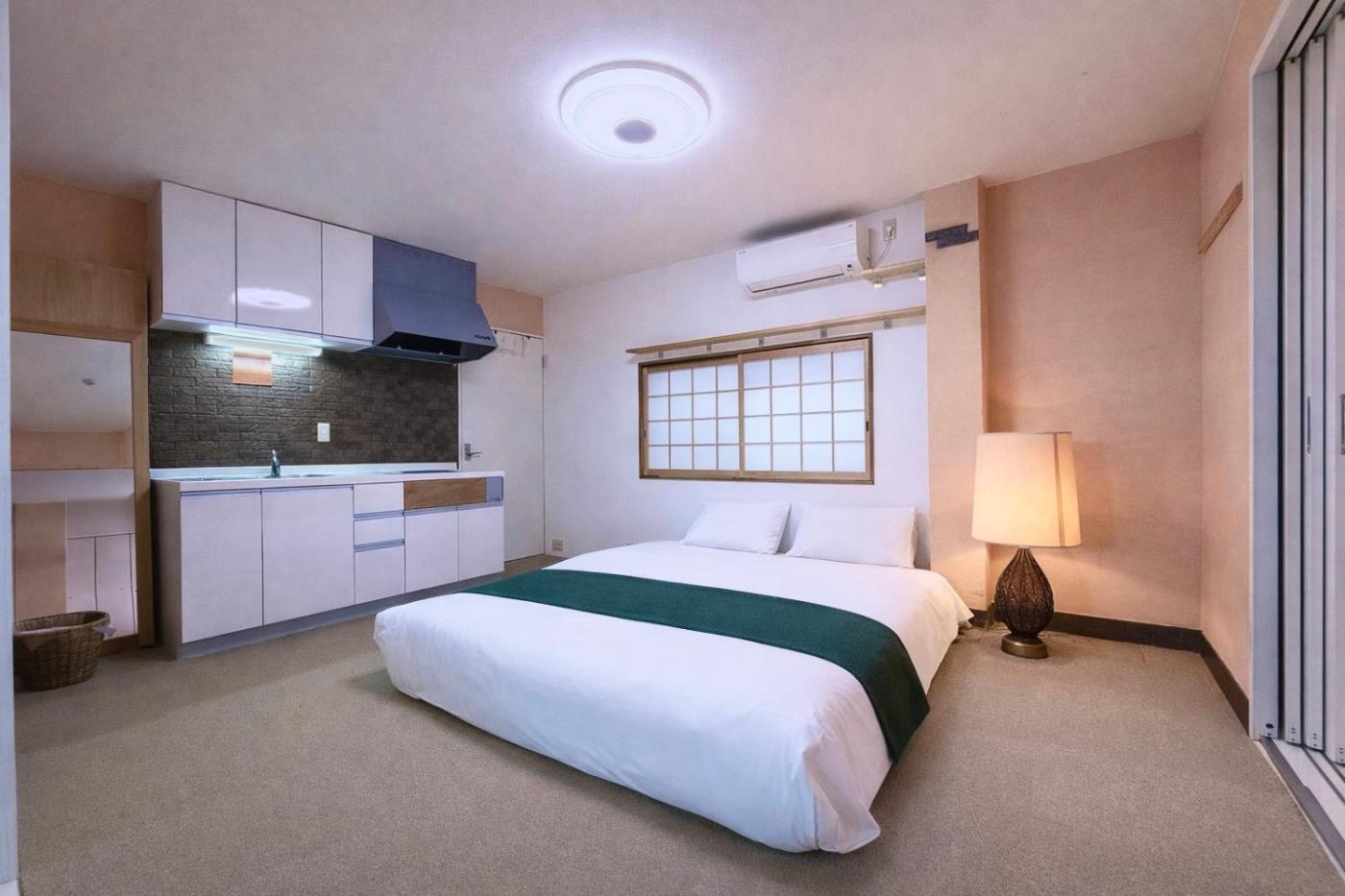 One-Bedroom Apartment. The hot tub is a top feature of this apartment. Boasting a private entrance, this air-conditioned apartment comes with 1 living room, 1 separate bedroom and 1 bathroom with a bath and a bidet. In the well-fitted kitchen, guests will find a stovetop, a refrigerator, a dishwasher and kitchenware. The spacious apartment features a washing machine, tatami, soundproof walls as well as a terrace with ancourtyard view. The unit has 3 beds.