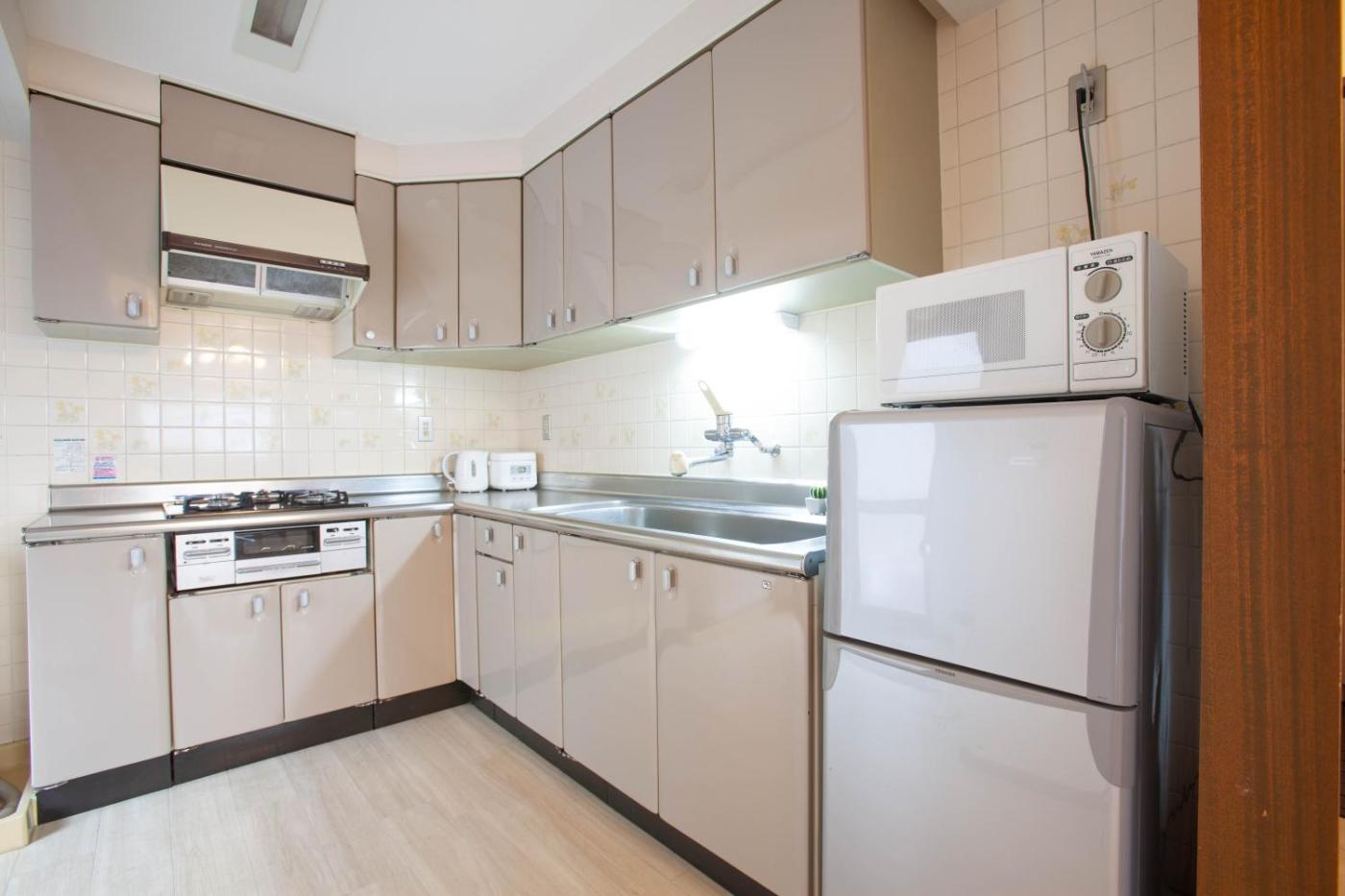Three-Bedroom Apartment. This spacious apartment comes with 1 living room, 3 separate bedrooms and 1 bathroom with a bath and free toiletries. In the well-fitted kitchen, guests will find a stovetop, a refrigerator, kitchenware and a microwave. This apartment is air-conditioned and has a seating area with a flat-screen TV, a washing machine, tatami, an electric kettle, as well as a sofa. The unit has 4 beds and 1 futon.