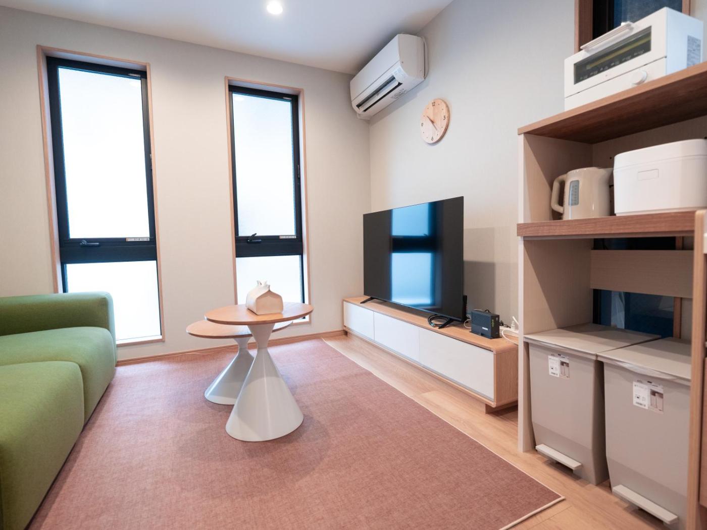Three-Bedroom Villa. Featuring a private entrance, this air-conditioned villa is comprised of 1 living room, 3 separate bedrooms and 1 bathroom with a bath and a hairdryer. The well-fitted kitchen features a stovetop, a refrigerator, kitchenware and an oven. Boasting a balcony, this villa also offers a washing machine, tatami and a flat-screen TV. The unit offers 5 beds.